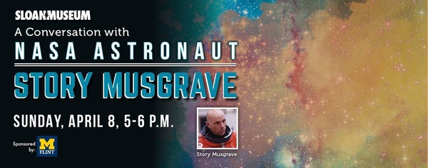 Story Musgrave returns for a dazzling multimedia presentation in connection with Sloan Museum’s Be The Astronaut exhibit. Story was a NASA astronaut for over 30 years and flew on six spaceflights. He performed the first shuttle spacewalk on Challenger’s first flight, was a pilot on an astronomy mission, conducted two classified DOD missions, and on his last flight, he operated an electronic chip manufacturing satellite on Columbia. He has seven graduate degrees in math, computers, chemistry, medicine, physiology, literature and psychology.