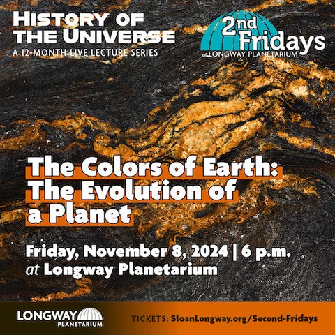 | Second Fridays: "The Colors of Earth: The Evolution of a Planet" (live format) Fri, Nov. 8, 6 p.m. |