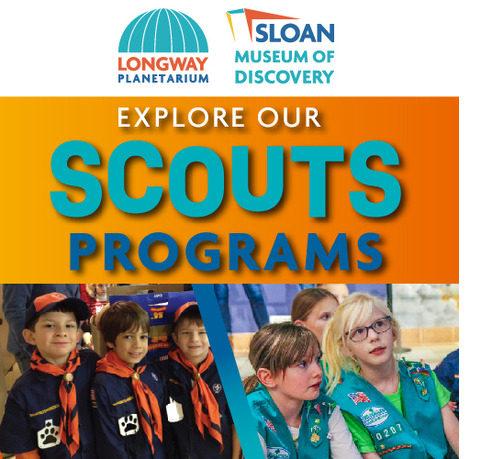| | Cub Scout Overnight: Space Science Researcher 11/17/2023 6 p.m. - 9 a.m. Cost: $32 scouts; $16 adults Longway Planetarium, 1310 E. Kearsley St., FlintCalling all Cadettes! Are you ready to research the stars! Study the colors of light and learn about “invisible light” coming from the sun. Learn how to use a telescope and create a way to help prevent light pollution. Spend time in our planetarium theater leaning about stars and the night sky. Register here. Learn more and register your scout groups online at SloanLongway.org/Scouts or call our scheduler at (810) 237-3409 Monday-Friday 8:30-4:30 p.m. |