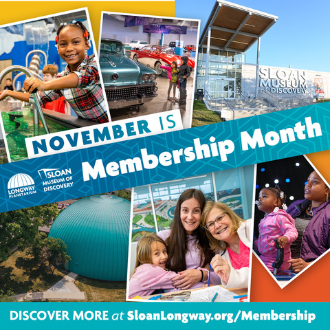 When you re-new or buy a new membership during the Month of November, you'll save $! Know someone who is passionate about science or history? Memberships make great gifts! Learn more about the different membership levels and benefits of being a Sloan Museum/Longway Planetarium Member at SloanLongway.org/Membership, or email Membership@SloanLongway.org with any questions. |