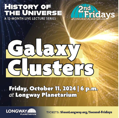 | Second Fridays: "Galaxy Clusters" (live format) Fri Oct 11, 6pm |