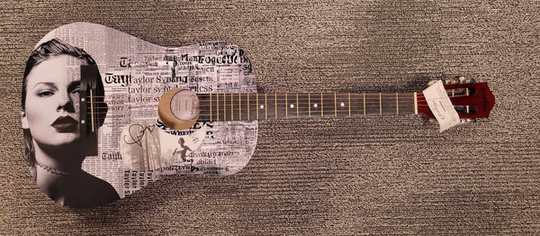 Item #1: An acoustic guitar signed by Taylor Swift perfect for any fan or collector; Taylor Swift's signature is prominently displayed on the body of this Ashthorpe guitar and is verified by PSA. |