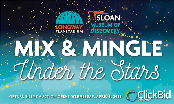 We will be hosting a Silent Auction via ClickBid. To participate in the Mix & Mingle silent auction, please register for an account on our ClickBid auction website. The silent auction will open Friday, April 8, 2022, at Noon. A credit card is required to create your account; however, you will only be charged if you win an item. Your ClickBid account allows you to start bidding before the event! We will notify all registrants when auction items are live on the website. All proceeds from the auction will benefit Sloan Museum and Longway Planetarium’s operations.