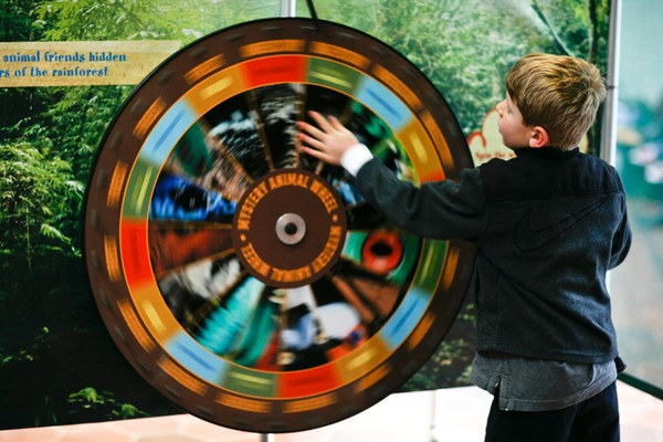 Explore the rainforest in two interactive mazes, Rainforest Adventure and Tropical Odyssey, created by Minotaur Mazes. Both mazes are full of the sights and sounds of a tropical rainforest, with puzzles and physical challenges that are great for ages 4 to adult. Answer challenge questions to progress from the canopy to the forest floor, and follow the lifecycle of a butterfly as you explore sustainable butterfly farming in the rainforest.