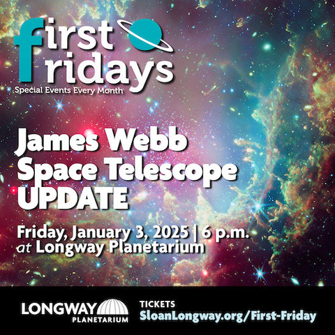 | First Fridays: "James Webb Space Telescope Update" (live format) Fri. Jan. 3, 6 p.m. |