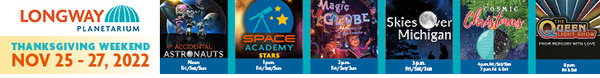 (BONUS...Genesee County Residents get 50% off their ticket prices every day at Longway Planetarium! Teachers, active military members and their families, and military veterans all receive FREE general admission every day!) |