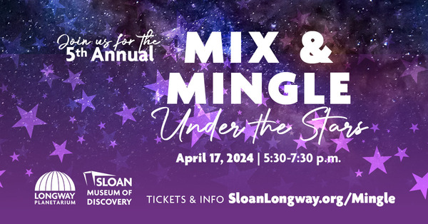 Mix & Mingle Under the Stars is a fun and casual fundraiser held at Longway Planetarium in support of educational programming. Join us on Wednesday, April 17, 2024, from 5:30-7:30 p.m. Enjoy tastes of local food, cocktails, ciders, wine, and beer served up by Genesee County’s favorite chefs and brewers. This fun event will also feature a silent auction. Learn more and buy tickets here.