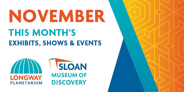 When reserving a ticket for a show at Longway Planetarium, please go to SloanLongway.org/Now-Showing and pick the show date you'd like to attend; shows selected for November 4, 5 or 6 will have a $0 ticket (excludes First Friday live show on Nov. 4). Show tickets are limited to 129 seat capacity in the planetarium dome. |