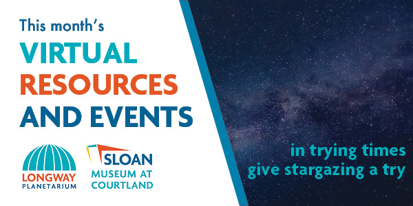 Our educators and planetarium presenters are developing short, educational videos to inspire at-home learning while schools are closed. We’ll show you fun science experiments you can do with common household items, and stargazing tips using the night sky renderings you’d normally see in the planetarium.