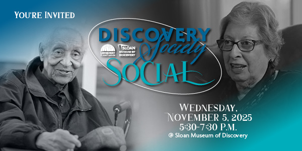 Please Join Us at the Discovery Society SocialWednesday, November 5, 2025 Sloan Museum of Discovery 1221 E. Kearsley Street, Flint, MI 48503 Drinks | Hors d'oeuvres | Connections Join us for an evening of connection, discovery, and storytelling at the fall Discovery Society Social. This special gathering will also celebrate the launch of our new Oral History Digital Platform: Vehicle City Stories. Be among the first to view featured clips from our oral history collection, experience Vehicle City Stories firsthand, and celebrate the voices and stories that shape our community. Vehicle City Stories are proudly sponsored by the Binder Family and Hurand Family.