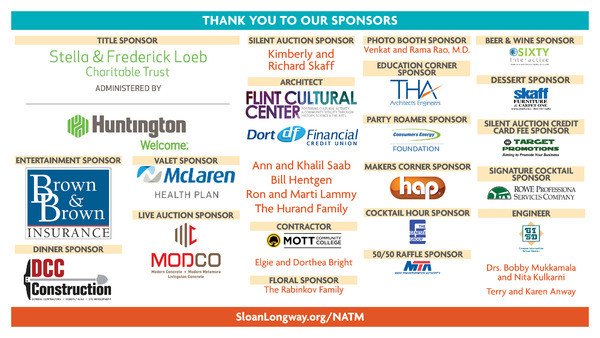 Please RSVP by September 8. Purchase tickets or sponsorships online at SloanLongway.org/NATM Ticket Sales: Contact Lauralyn at 810-237-7331 or LMcintosh@SloanLongway.org Sponsorship Opportunities: Contact Debbe at 810-252-3424 or DCampbell@SloanLongway.org