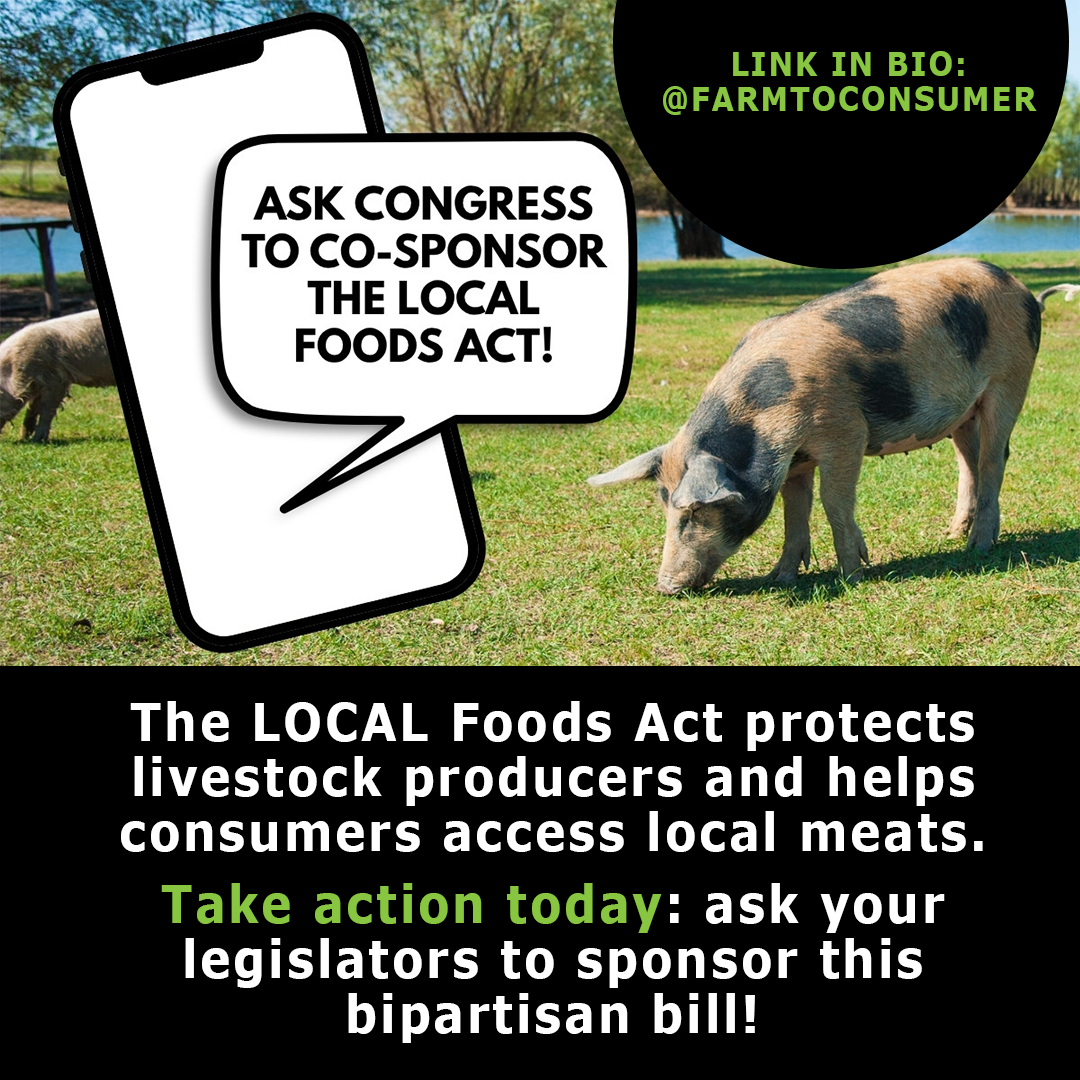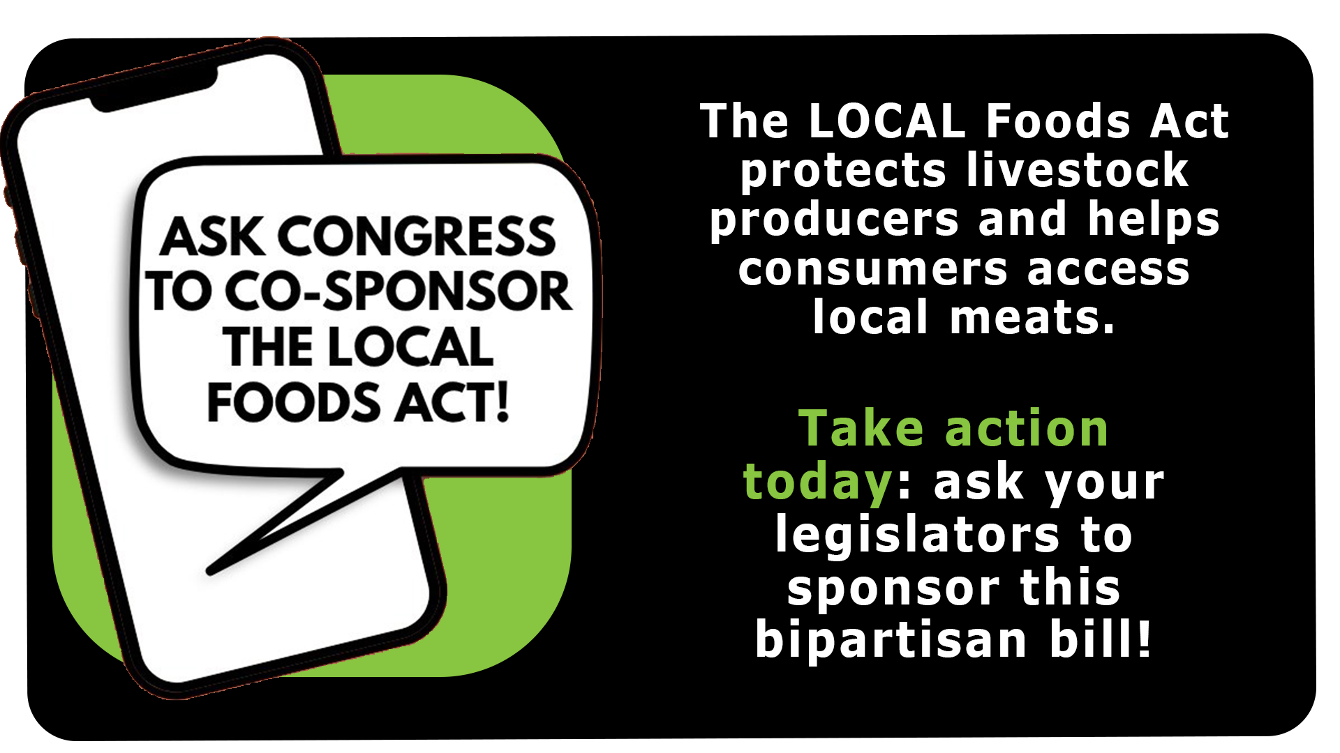 Sample Facebook post: Take action today for a bipartisan bill that supports small-scale meat producers in rural communities! The LOCAL Foods Act...