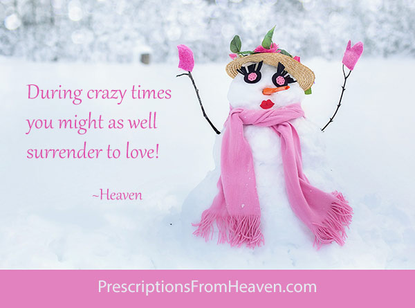 Friend,When it seems like life is turned upside down, it's difficult to know how to be or what to do.However, there is one thing you can do to keep your sanity.During crazy times you might as well surrender to love!
