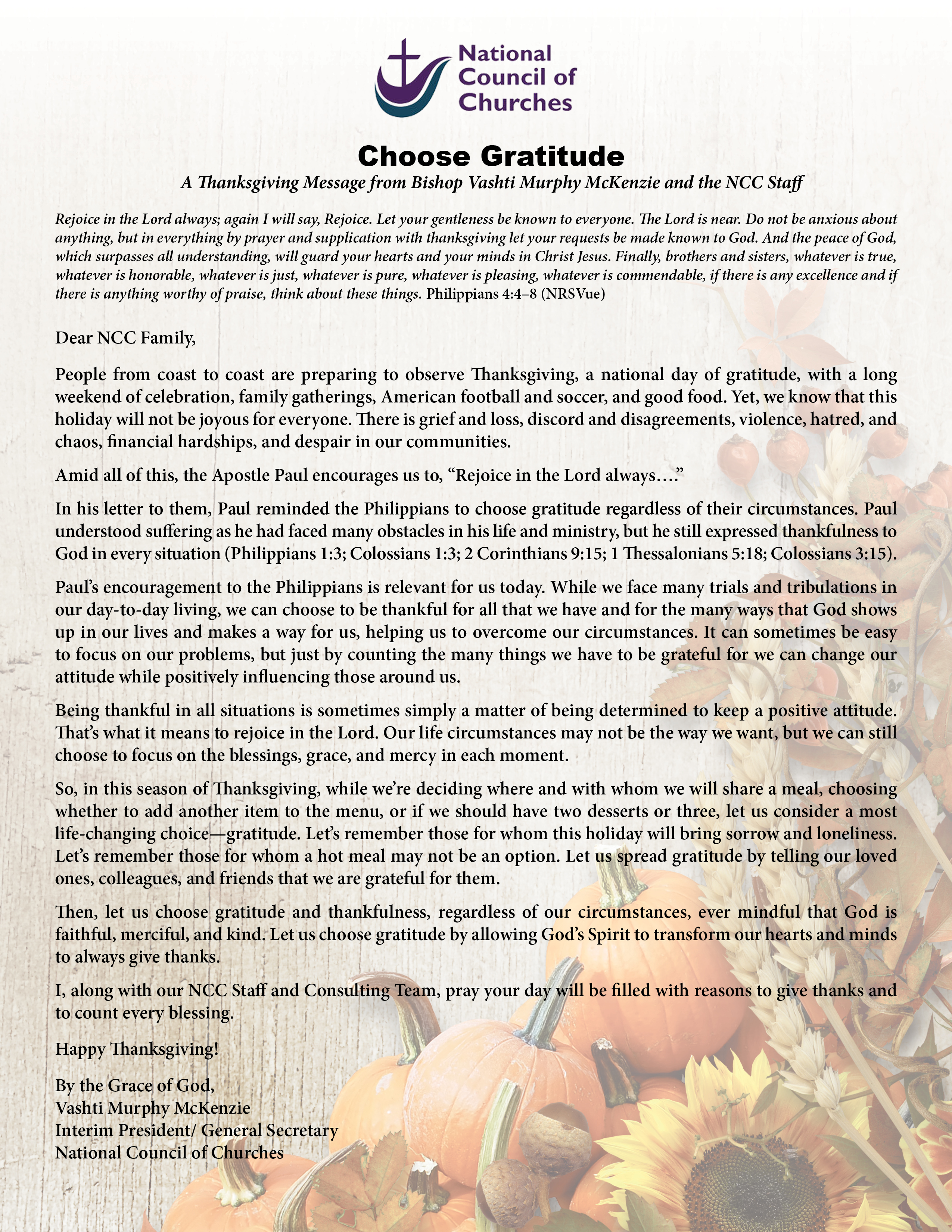 A Thanksgiving Message from Bishop McKenzie and the NCC
