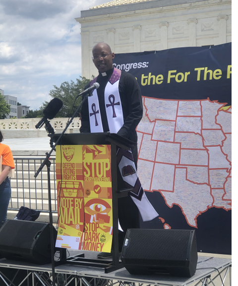 |  | Minister Christian S. Watkins, NCC Justice Advocacy and Outreach Manager, spoke at a rally sponsored by the Declaration for American Democracy Coalition at the Supreme Court on Thursday, June 24, 2021. The coalition organized to advocate for ending the filibuster and passing the For the People Act to protect voters. In his comments, Minister Watkins lifted up NCC’s history of fighting for voting rights, “Since Rev. Dr. Martin Luther King, Jr. marched this way back in 1963, the National Council of Churches has stood in solidarity and spoken prophetically about voting and civil rights among other social justice issues, and we’re definitely not stopping now. The NCC supports both the John Lewis Voting Rights Act and the For the People Act, which will go a long way to safeguarding our Constitutional right to vote. And, with what has transpired once again in the US Senate earlier this week…the NCC echoes the clarion call for the abolition of the Jim Crow relic known as the filibuster. The filibuster must never again be used a threat in order to kill legislation. It is a cowardly tactic designed to forestall progress for the good of the nation.”
