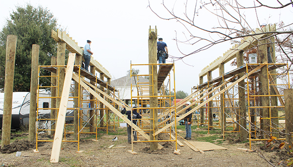 Registration link: www.brethren.org/intercultural/#sankofa | | Brethren Disaster Ministries Seeks Skilled Volunteers | | The August 2023 rebuilding response in Pointe-au-Chien, La., when pilings were being driven to support homes in the bayou community. Photo by Zoe Nagasawa | Brethren Disaster Ministries, with leadership from Cliff Kindy, is organizing a team of skilled volunteers to serve in Pointe-au-Chien, La., from April 7-28 to rebuild a home destroyed by Hurricane Ida in 2021. Organizers are seeking 6 to 10 volunteers to serve for two weeks.