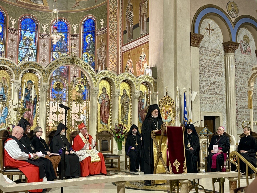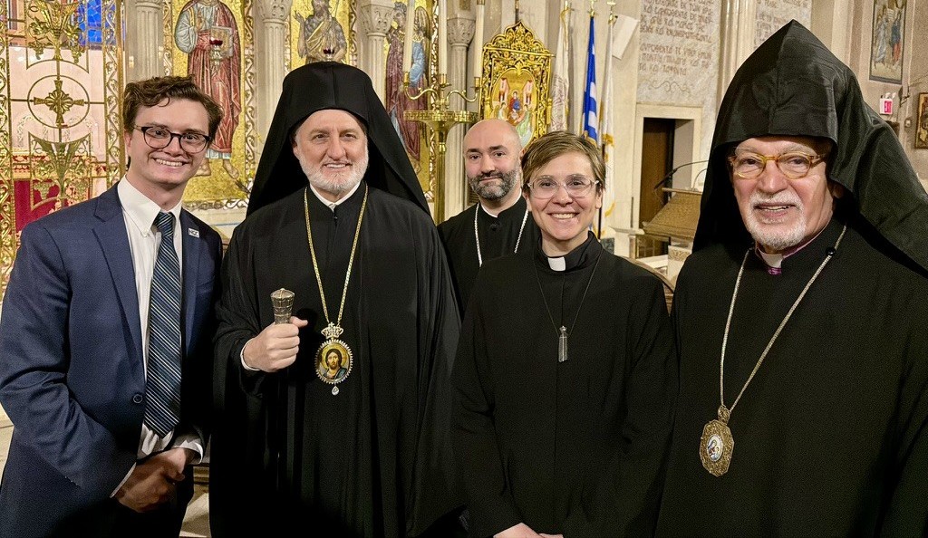 Watch the prayer service video on Facebook. | | Clergy and other people of faith at an interfaith prayer service at the Lutheran Church of the Reformation in Washington, DC, on January 29. Photo: Religious Action Center of Reform Judaism | | NCC Governing Board Chair Hosts Ecumenical Prayer Service | | His Eminence Archbishop Elpidophoros of America, NCC governing board chair, with other clergy gathered at an ecumenical service to observe the 58th Week of Prayer for Christian Unity. Photo: Matt Markay, NCC | On Thursday, January 29, National Council of Churches governing board chair, His Eminence Archbishop Elpidophoros of America, hosted an ecumenical prayer service at the Archdiocesan Cathedral of the Holy Trinity in New York City in observance of the 58th Week of Prayer for Christian Unity. Ecumenical leaders from across the country gathered to pray and celebrate the hope found in our unity in Christ. While ecumenical in nature, the service honored the traditions of the Armenian Apostolic Church, its members creating the materials for this year's week of prayer. Staff member Matthew Markay represented NCC at the Manhattan service. NCC Governing Board members participating in the service included: His Eminence Archbishop Elpidophoros of America (Greek Orthodox Archdiocese of America) His Eminence Archbishop Vicken Aykazian (Armenian Church of America) Rev. Kirsten Guidero, PhD (The Episcopal Church) Rev. Nicolas Kazarian, PhD (Greek Orthodox Archdiocese of America)