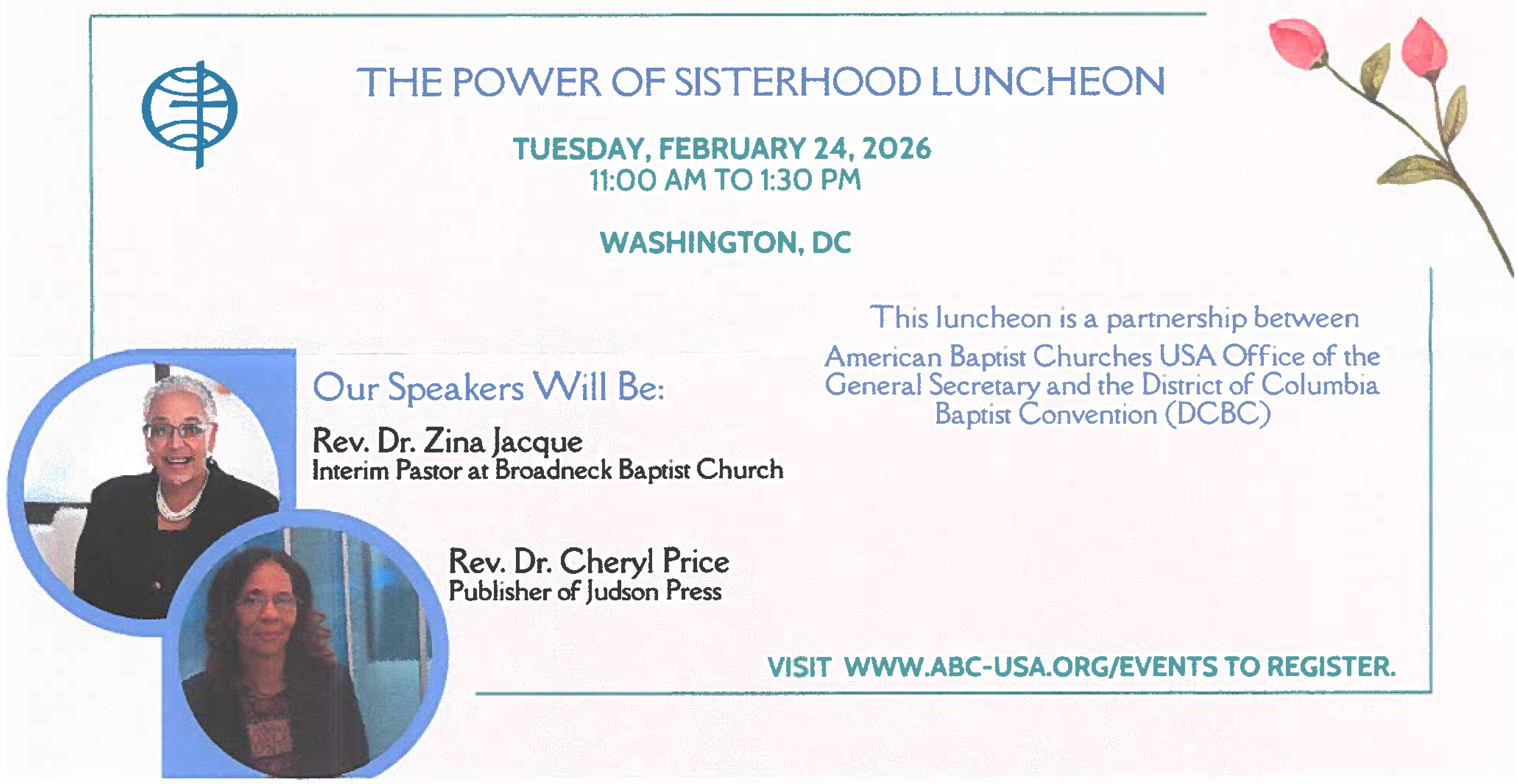 This luncheon is hosted by American Baptist Churches USA, Office of the General Secretary, and the District of Columbia Baptist Convention.