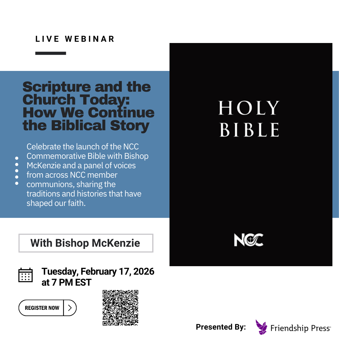 NCC will not be silent. #WeWillNotBeSilent | | NCC Joins with Faith Organizations in Solidarity with Greenland | | | Washington, D.C.— The National Council of the Churches of Christ in the USA (NCC) joined an urgent meeting convened by the World Council of Churches and church leaders from Greenland, Denmark, the wider Nordic region (Finland, Sweden, Norway, Iceland), and Canada earlier this month to discuss the Trump administration’s plans to take ownership and control of Greenland. Over the last several weeks, the administration’s comments about buying and controlling Greenland appear to have been more than speculative, triggering a crisis between the U.S. and its NATO allies. Church leaders gathered to discuss ways to stand together, support the people of Greenland and one another, and bear witness to Christ in their home countries and globally amid international upheaval. Bishop Vashti Murphy McKenzie, NCC’s president and general secretary, emphasized the ecumenical body’s support for and solidarity with Greenlanders. “We stand with Greenland. We are praying with you. We are standing with you. We are being vocal with you. We will not be silent about Greenland and our siblings across the world.” Bishop McKenzie also shared thoughts on how churches can stand in solidarity during this time of crisis, including: listening to global voices; prayer as public witness; creating opportunities to worship together; and developing stronger infrastructure to check on, support, and care for one another. Rev. Terri Hord Owens, NCC vice chair and general minister and president of the Christian Church (Disciples of Christ) in the United States and Canada, noted, “We in the U.S. are using all the tools available to us to stand with the people of Greenland and resist these actions by the federal government. We will continue to speak out and encourage our churches and our clergy to be visible in their resistance, standing for the liberties that God has granted us.” Bishop Paneeraq Siegstad Munk of Greenland, who remarked that the island was experiencing attention it is not accustomed to, shared, “What we need to know in Greenland is that we are not alone. We are used to having to wait until the snowstorm is over for the sun to come back.” Several church leaders expressed concerns about what it would mean to buy or own a country and its people. Criticism of U.S. militarization and neocolonialistic aggression was also raised, particularly that this crisis disregards Greenland’s trajectory of independence from Denmark. The issue of Greenlandic self-determination was a theme that church leaders underscored in their comments. WCC General Secretary Rev. Prof. Dr. Jerry Pillay, emphasized that Greenland is not land to be purchased. He also commented that there is strength when churches and ecumenical organizations stand together. “Crisis has a tendency to bring people together… Greenland brings us together to express our solidarity and to be mindful about other crises as well,” he said. Additionally, Rev. Prof. Dr. Pillay remarked, “We value the opportunity to accompany member churches and regions and contexts in struggles and suffering, and we also value the opportunity to be a global platform and a global voice to these particular experiences.” Despite outcries from numerous sectors around the world, the U.S. envoy to Greenland, Jeff Landry, revealed in a New York Times editorial (Thursday, Jan. 29) that the U.S. is expecting to gain “total, unfettered access to the island.” As this crisis unfolds, NCC joins a worldwide faith community in supporting Greenland’s right to self-determination and self-governance. Further, NCC echoes calls for the U.S. to respect the will of Greenlanders and existing alliances, to work cooperatively with Greenland, Denmark, and NATO to address Greenland's concerns, and to end its inflammatory threats and actions toward the country. The body of faith leaders convened to address this urgent situation represented worldwide interests. Peter Prove, director of the WCC Commission of the Churches on International Affairs, served as the meeting moderator. Others on the call representing the U.S. included: Rev. Dr. Karen Georgia Thompson, general minister and president of the United Church of Christ, who joined the meeting from Germany; Rev. Dr. Leslie Copeland, NCC senior associate general secretary and advocacy director; and, Rev. Dr. Angelique Walker-Smith, WCC North American president who represents the National Baptist Convention USA on NCC’s Governing Board. Dr. Walker-Smith delivered remarks and closed the meeting with a prayer. A recap of the WCC meeting is available here. | | | Friendship Press to Host Webinar Celebrating Launch of NCC Commemorative Bible | | Celebrate the launch of the NCC New Revised Standard Version Updated Edition Commemorative Bible with Bishop McKenzie and a panel of voices from across NCC member communions, sharing the traditions and histories that have shaped our faith.