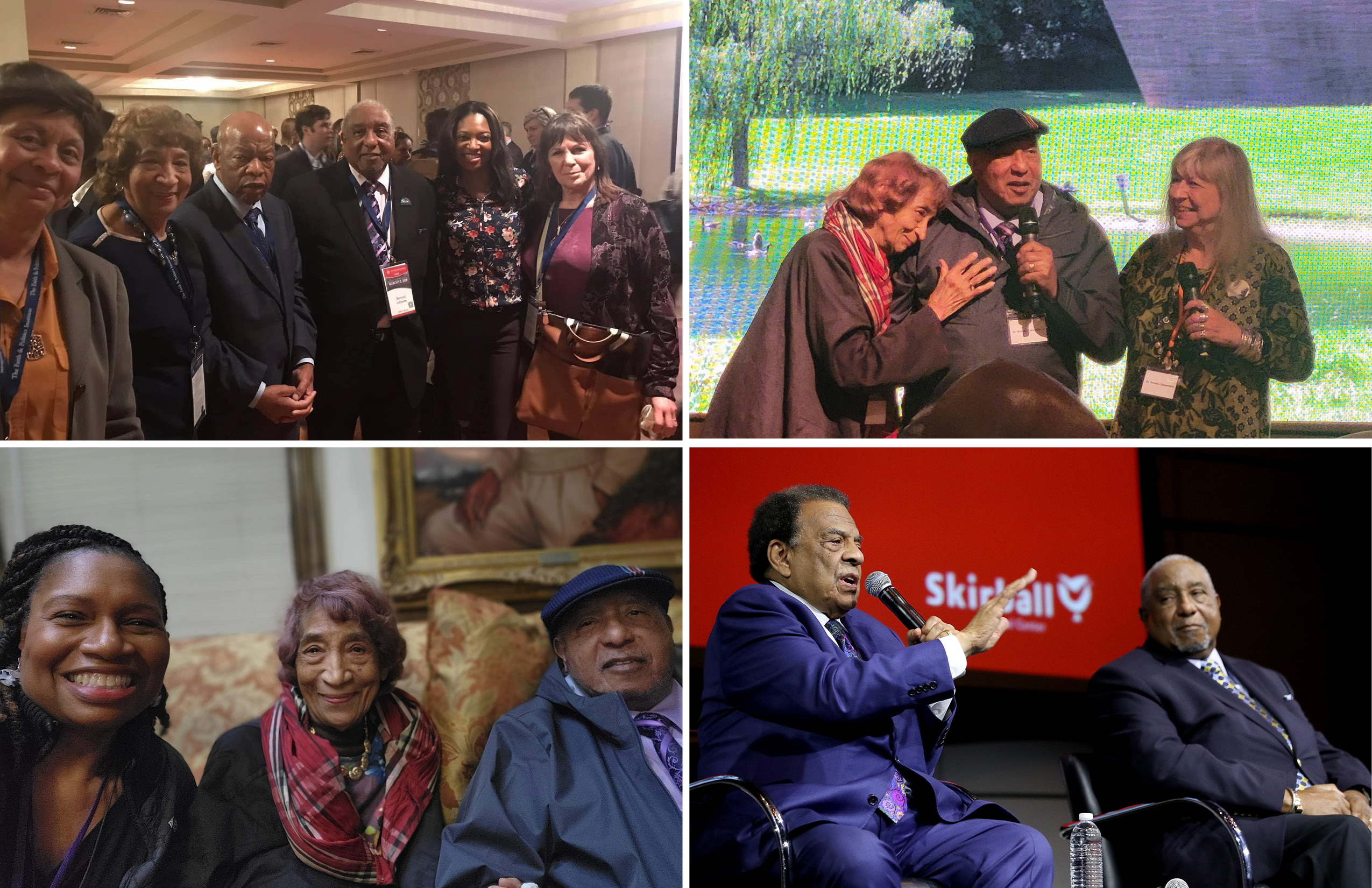 To watch a recording of the webinar, click below. | | | NCC Reflects on the Passing of a Civil Rights Icon | | Clockwise: Dr. Bernard Lafayette with Rev. Adowa Rey (second, right), Rep. John Lewis, and Mrs. Katie Lafayette (second, left); Dr. and Mrs. Lafayette with his co-author, Kathryn Lee Johnson; Rev. Dr. Leslie Copeland Tune with the Lafayettes; Ambassador Andrew Young on a panel with Dr. Lafayette in 2018 (Photo by Maury Phillips/Getty Images) | NCC remembers the pioneering work and remarkable legacy of Rev. Dr. Bernard Lafayette, a key civil rights leader and ordained Baptist minister who passed away on March 5. He was a co-founder of the Student Nonviolent Coordinating Committee (SNCC) and a strategist and participant in the Nashville sit-ins in the 1960s.