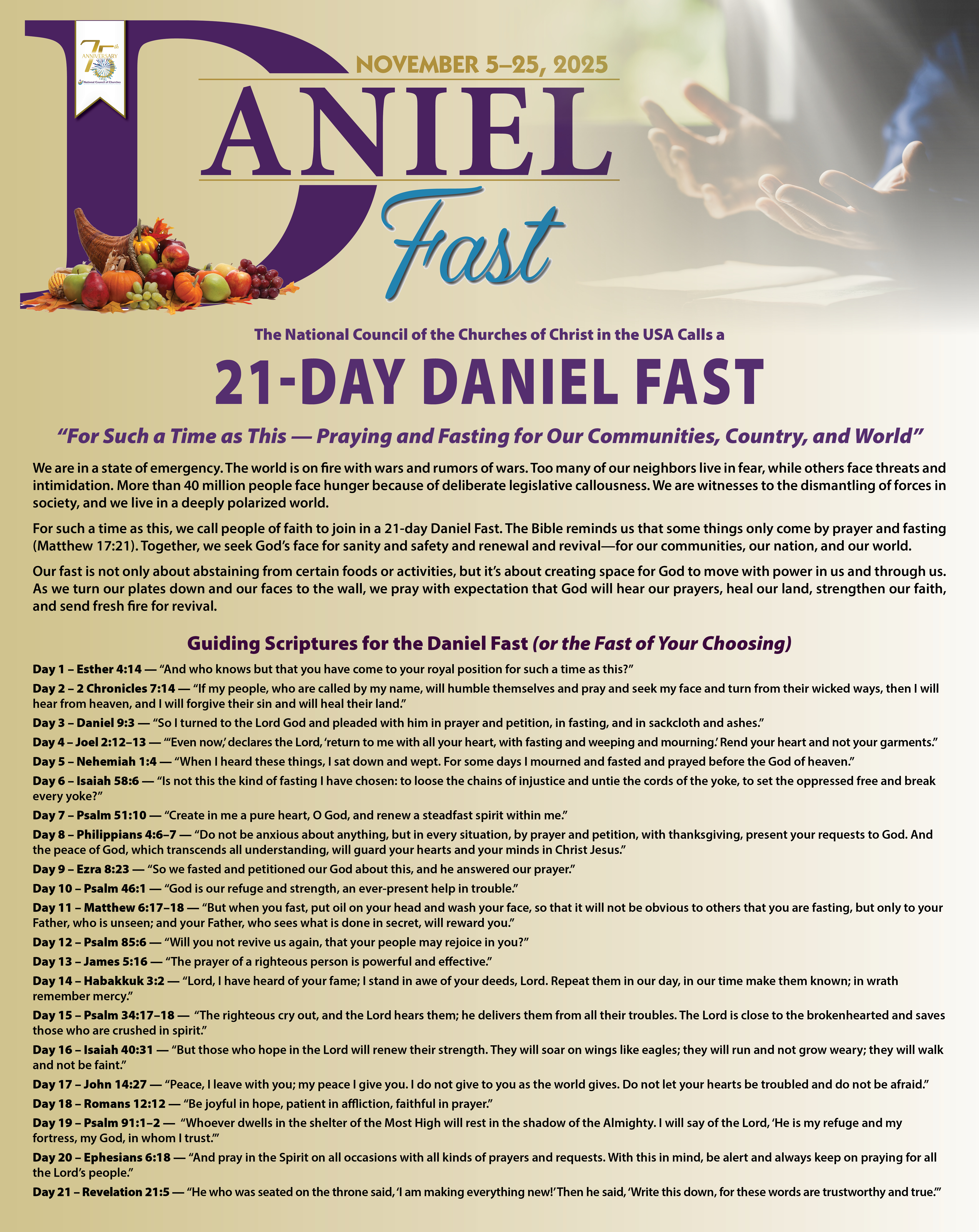 | | | | ARE YOU FOLLOWING NCC ON SOCIAL MEDIA? Check out our social media accounts for NCC updates! | | NCC Calls 21-day Daniel Fast, a Time of Fasting and Praying | | | NCC Staffers Join UCC Conference Ministers for 'Love Has No Borders' Vigil | |