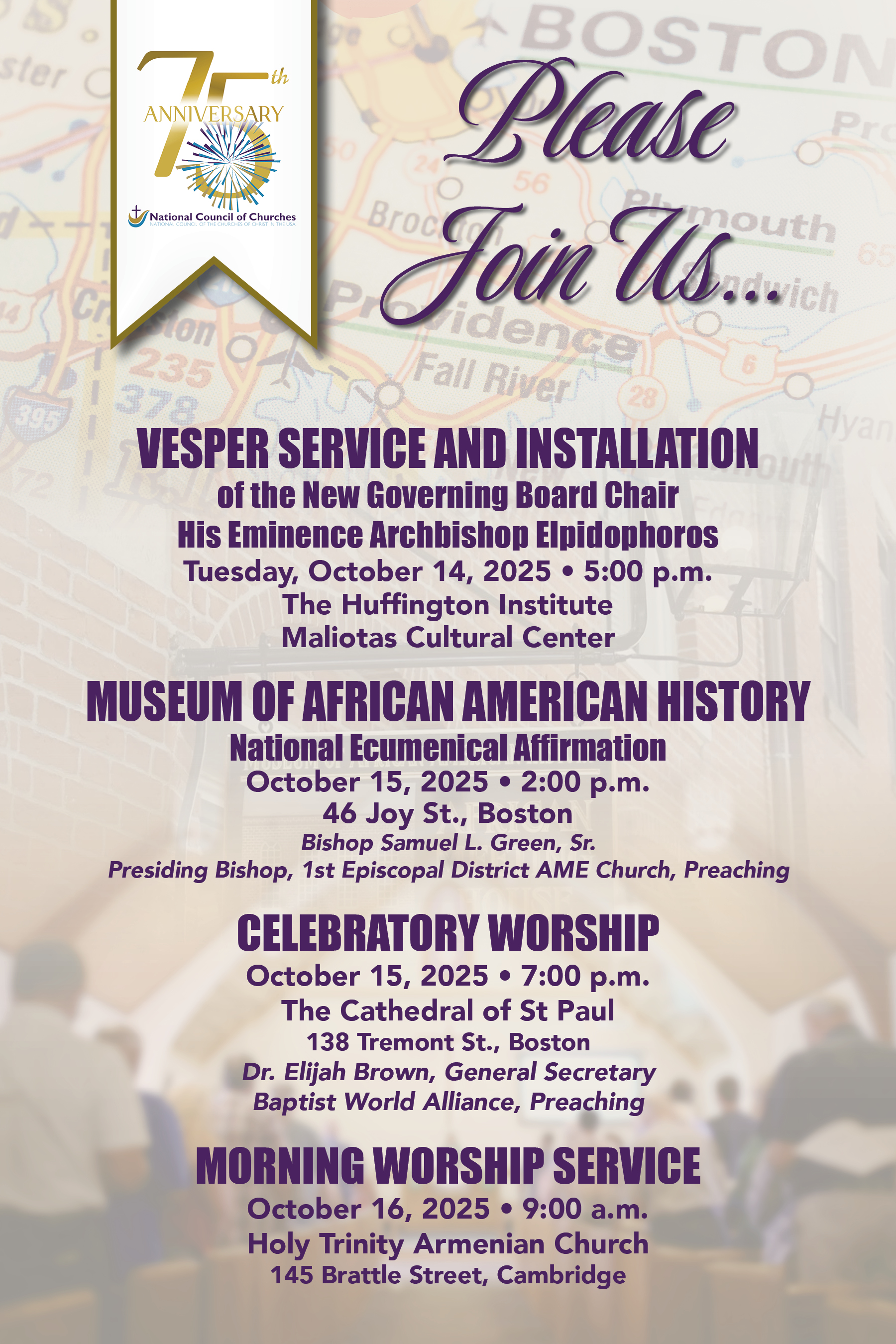 4:30 PM Ecumenical Walking Tour (Optional): Quaker Meeting House, Paulist Center, Park Street (NAACP/MCC founded here); King’s Chapel