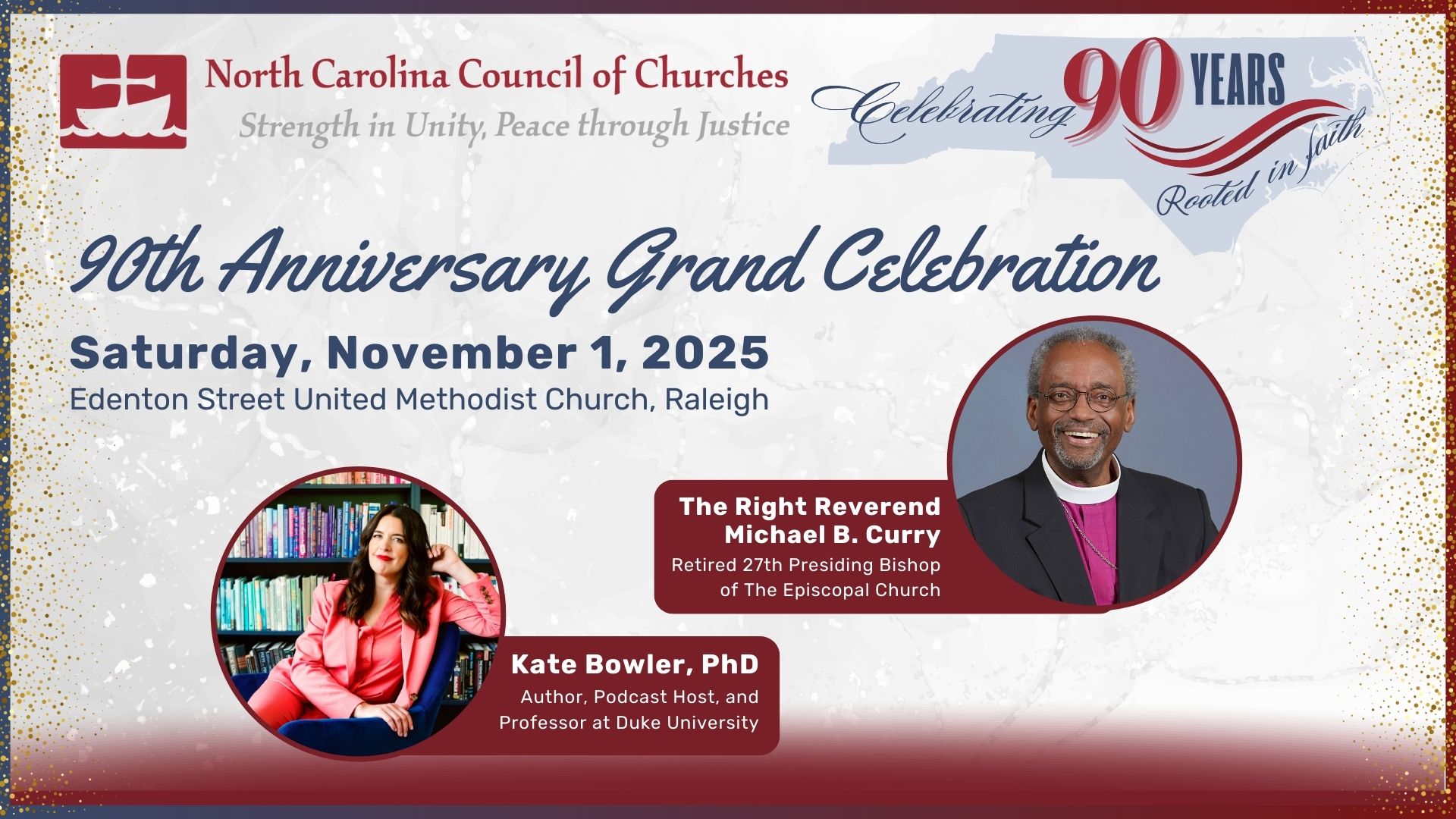 Application deadline: November 30 | | | Congressional Black Caucus Annual NREI Summit, November 1 | | Come to New Orleans to commemorate five years of the National Racial Equity Initiative for Social Justice (NREI)! The 2025 NREI Summit will bring together thought leaders, advocates, and changemakers committed to advancing racial equity across the justice and education systems. Come and explore transformative solutions that center Black communities and reimagine pathways to opportunity and justice. From dynamic conversations to community-focused engagement, the Summit will offer space to reflect, strategize, and build power. 📌 Mark your calendar and stay tuned for more details on programming and registration. | | | NC Council of Churches Prepares for 90th Anniversary Celebration | | This November, the North Carolina Council of Churches will celebrate 90 years of prophetic witness, faith-rooted advocacy, and ecumenical partnership. We invite everyone to celebrate with us for a day of worship, community, and joy! NCCC invites congregations and organizations to join this historic milestone by becoming a sponsor for the event. Sponsorship will offer a unique opportunity to support our continued work for justice while also receiving exclusive benefits, including:
