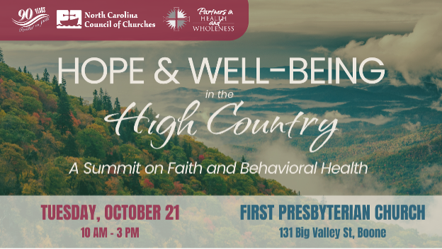 For the Application Form and more details about the Asian Ecumenical Women's Conference (AEWC) 2025, please click the following links: | | | NCCC’s Partners in Health and Wholeness Sponsor One-day Summit, October 21 | | Join the North Carolina Council of Churches’ Partners in Health and Wholeness Initiative for a one-day Summit, where faith and behavioral health will intersect to address mental health, substance use, trauma, and resilience. Behavioral health encompasses the emotional, psychological, and social aspects of well-being, and this gathering will explore how faith communities can provide compassionate support and practical tools for healing and wholeness.