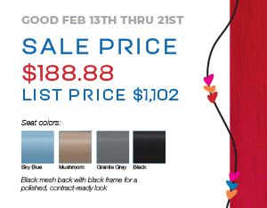 Your Valentine’s Day promo is here. Executive comfort and support at a hard-to-beat price.