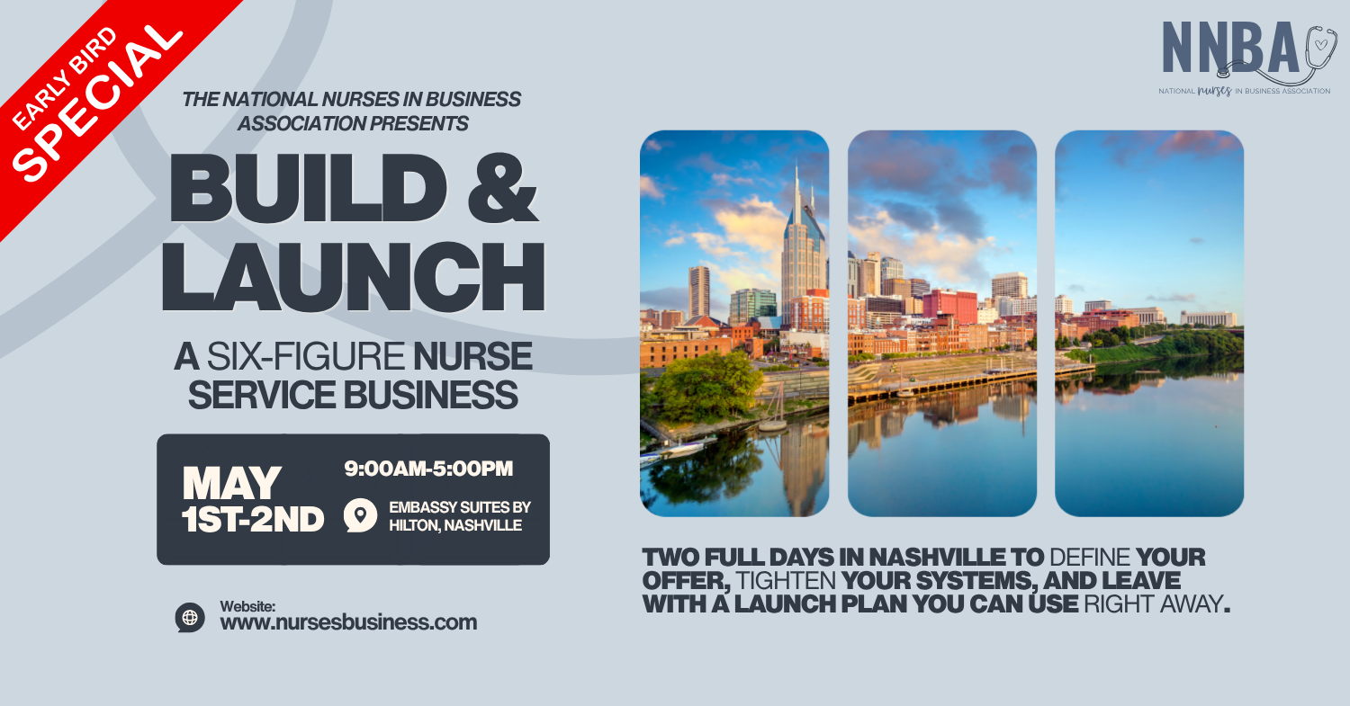 We’re bringing nurses together in Nashville for a 2-day, hands-on workshop focused on building and launching real, sustainable businesses and there’s only one more day to take advantage of early bird pricing before it’s gone.