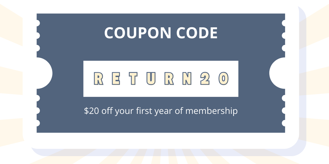 Rejoin today and use code RETURN20 for $20 off your first year of membership. | | | |