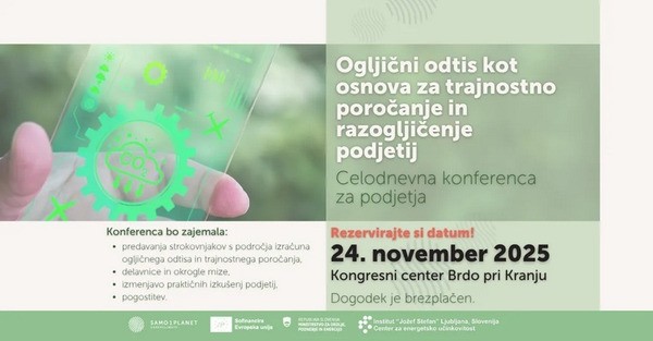 Konec novembra pripravljajo celodnevno brezplačno konferenco za podjetja, ki bo potekala v ponedeljek, 24. novembra 2025, v Kongresnem centru Brdo pri Kranju (dvorana Splendens). Dogodek bo namenjen podjetjem, ki želijo poglobiti svoje znanje o izračunu ogljičnega odtisa, trajnostnem poročanju in razogljičenju poslovanja.