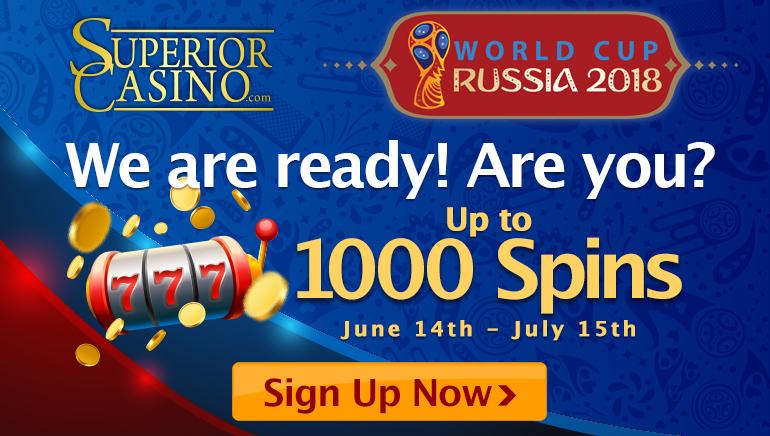 With the 2018 World Cup kicking off this week, Superior Casino will be offering up to 1,000 free spins to players during the tournament; the free spins will be credited to the Global Cup Soccer slot from Rival Gaming. Check it out!