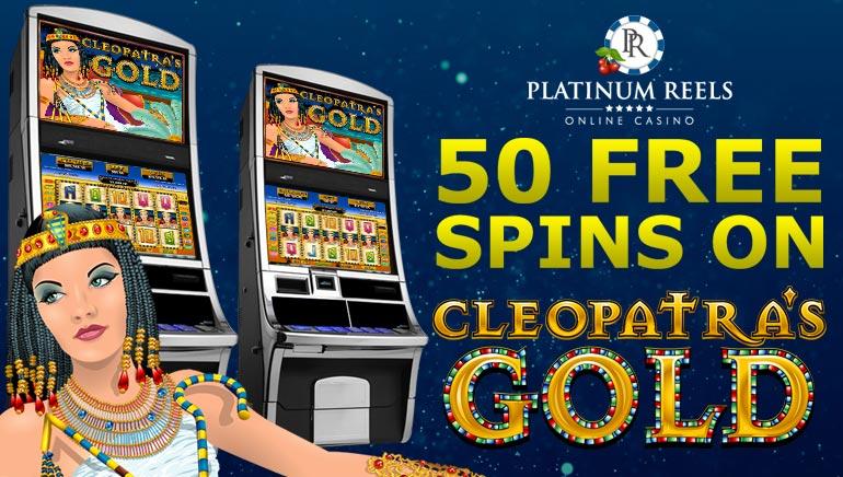 Enjoy a whopping 50 Free Spins – no deposit down – on Cleopatra’s Gold slot game at Platinum Reels Casino!