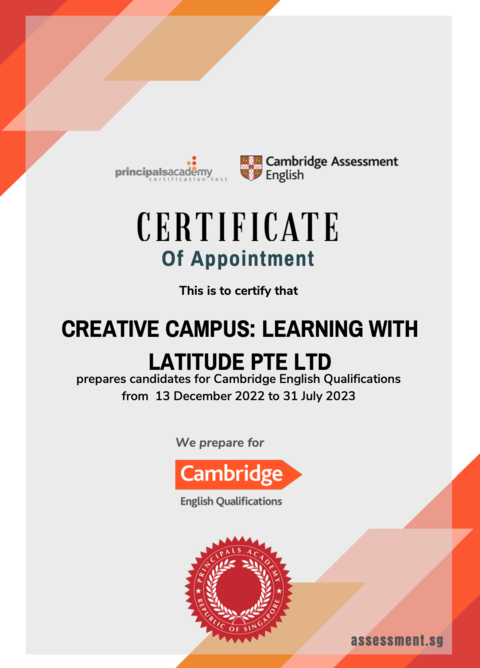 Cambridge Assessment: CEQ Authorised Prep Centre Since April 2022, the Ministry of Education (MOE) Singapore has been using the Cambridge Examination Qualifications (CEQ) as part of the entrance requirements for international students who wish to enrol in local primary schools. Creative Campus is proud to be one of the selected few authorised Cambridge English Preparation Centres in Singapore in 2023 to offer this service. Registration is open to prepare international students for the following CEQs: