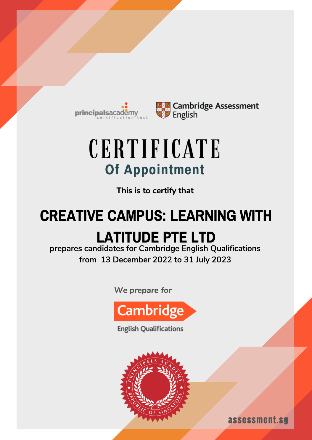 Creative Campus is proud to be one of the few selected authorised Cambridge English Preparation Centres in Singapore in 2023 to offer this service.