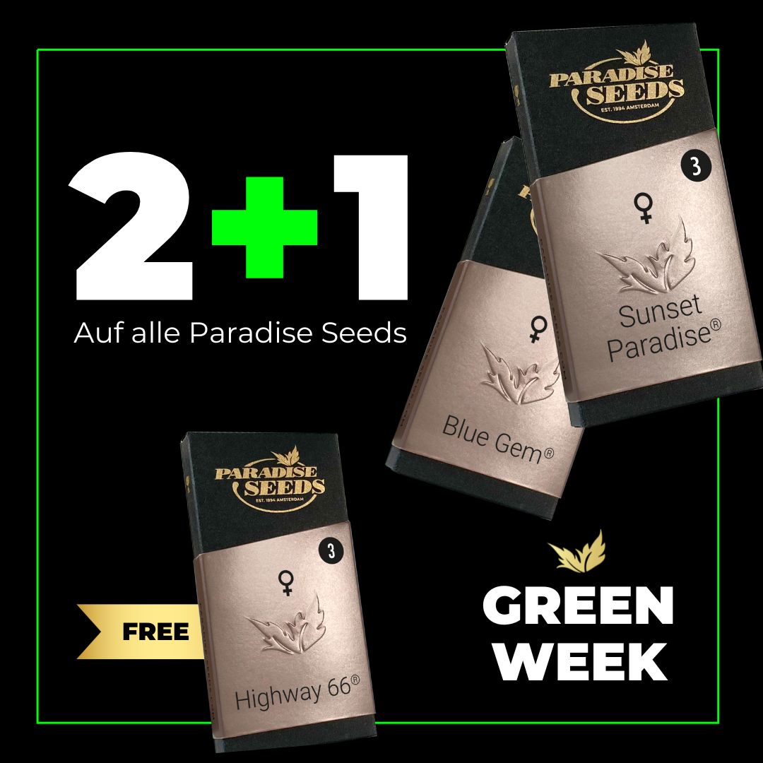 Green Week beginnt mit 2 + 1 (Mix & Match:) auf alle Paradise Seeds Sorten....und mehr!