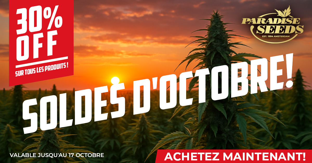 TOUTES les variétés Paradise Seeds, TOUTES les variétés Compound Genetics et TOUS le merchandising sont inclus.