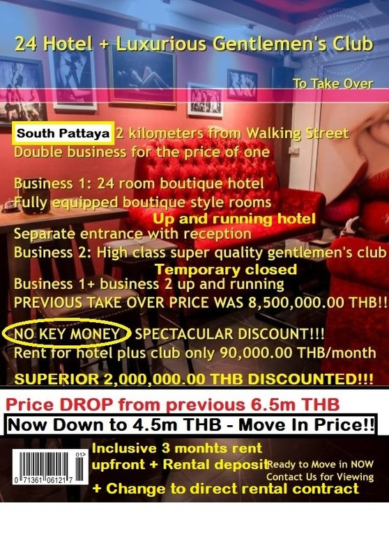 Hi Friend,  Following up the newsletter from yesterday the owner of the 24 rooms hotel plus gentlemen's club in central Pattaya contacted us and now provide ...