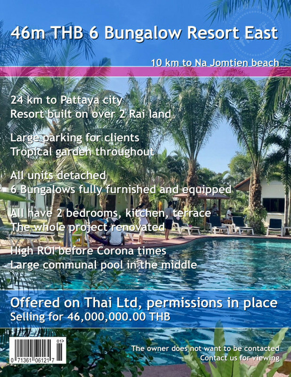 Subject: 6 Bungalow Pool Resort Bargain Price East Pattaya
