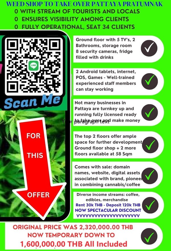 Time to jump on the weed shop succes train, here are some of the best weed shops in resale in Pattaya, click on posters to get more details...