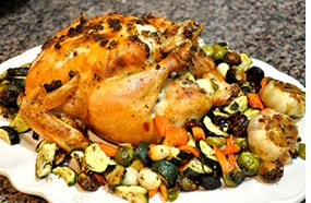 Roasting a whole chicken with veggies is a wonderful meal and is much simpler to prepare than you might think. Make this recipe on the weekend and then enjoy nutritious leftovers throughout your week. Servings: 5