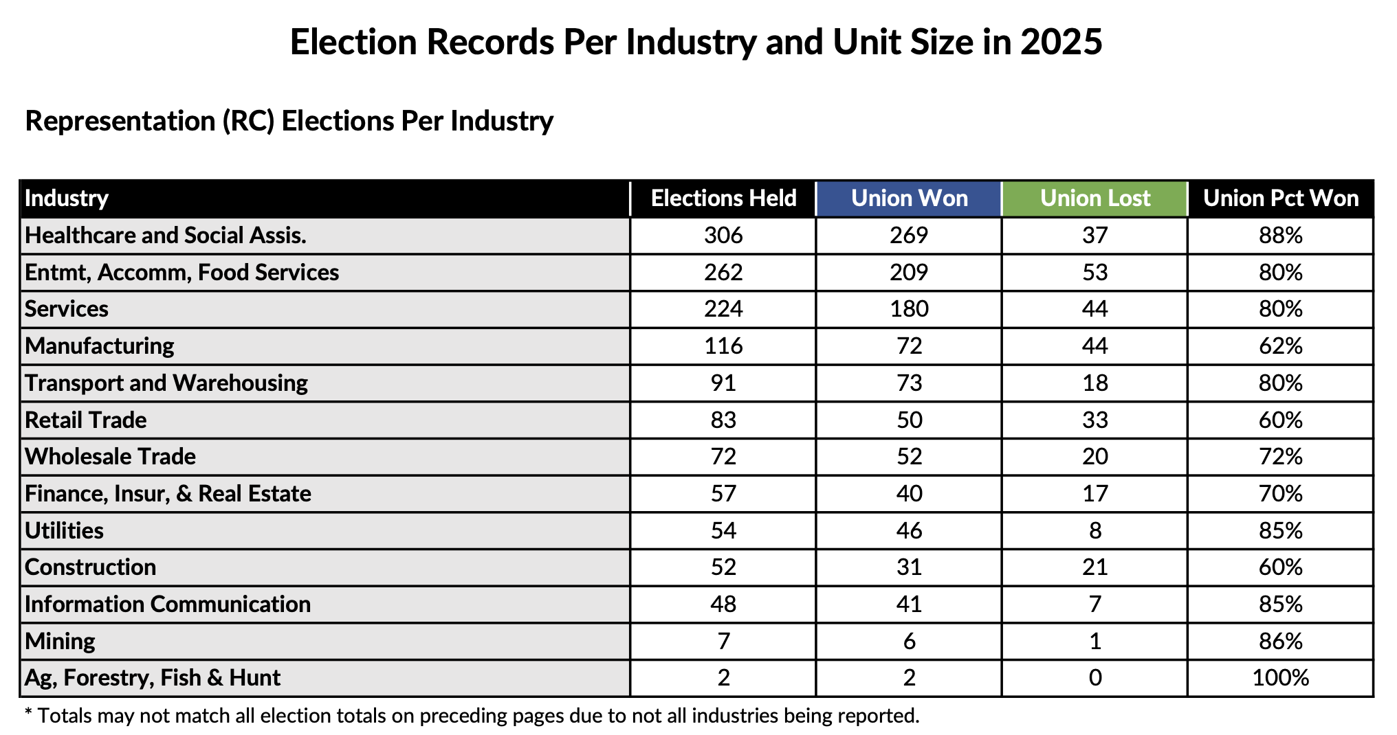 Below this chart, we will explore why these unions fall short of the 78% overall win rate in 2025 representation elections.