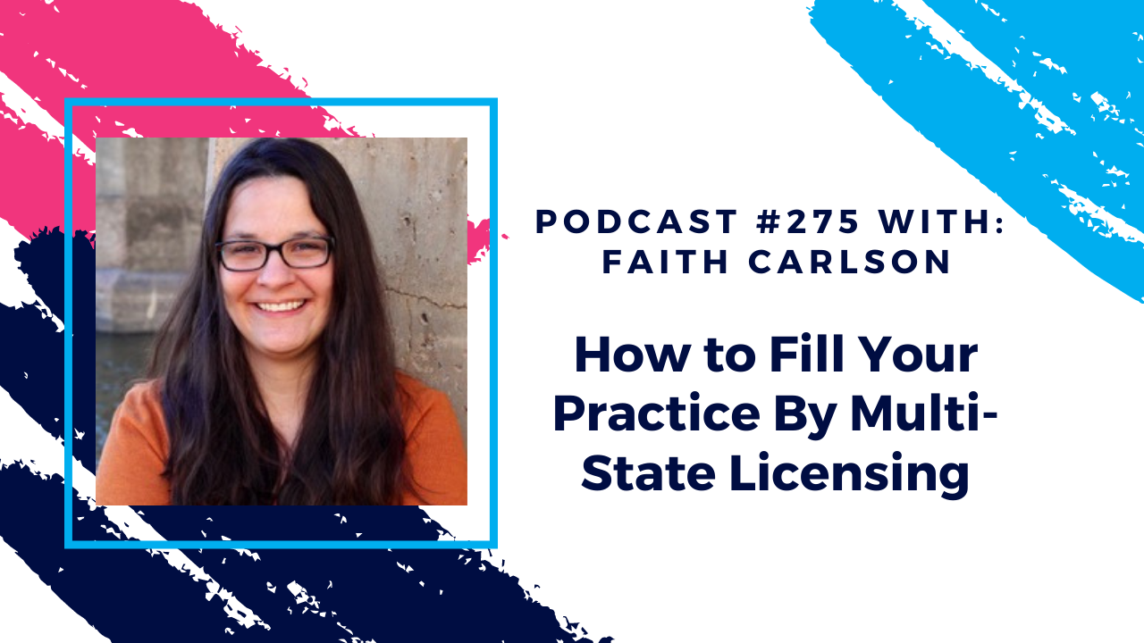 We interviewed Faith Carlson, LPC on today's episode on "How to Fill Your Practice By Multi-State Licensing". Faith shared her story of how getting licensed in multiple states has continued to keep her practice full.