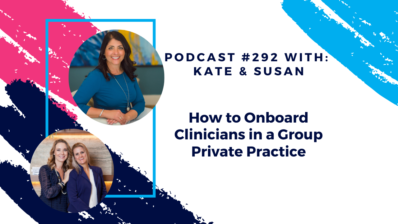 Join Susan Block and Kate Campbell as they talk about: How to Onboard Clinicians in a Group Private Practice.