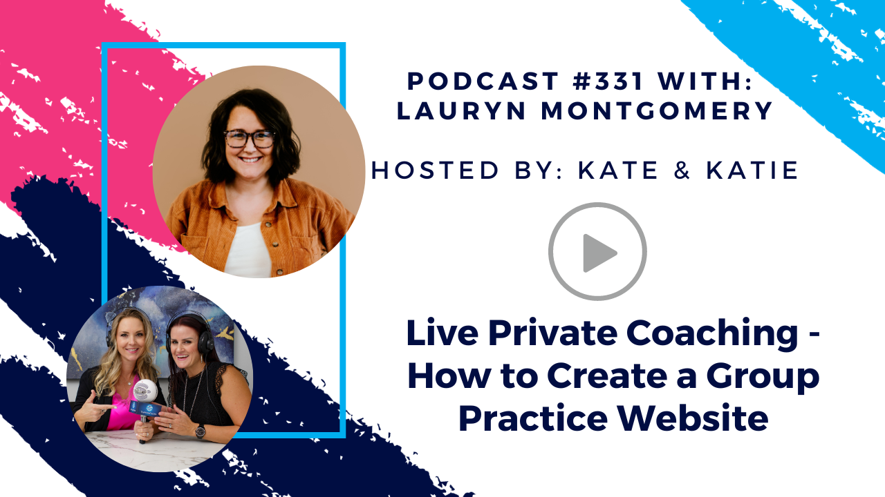Join our coach Dr. Kim Grocher, Katie Lemieux, LMFT and Lauryn Montgomery, LMHC on this podcast as we coach Lauryn live on taking the steps to transition her website into a group practice website.