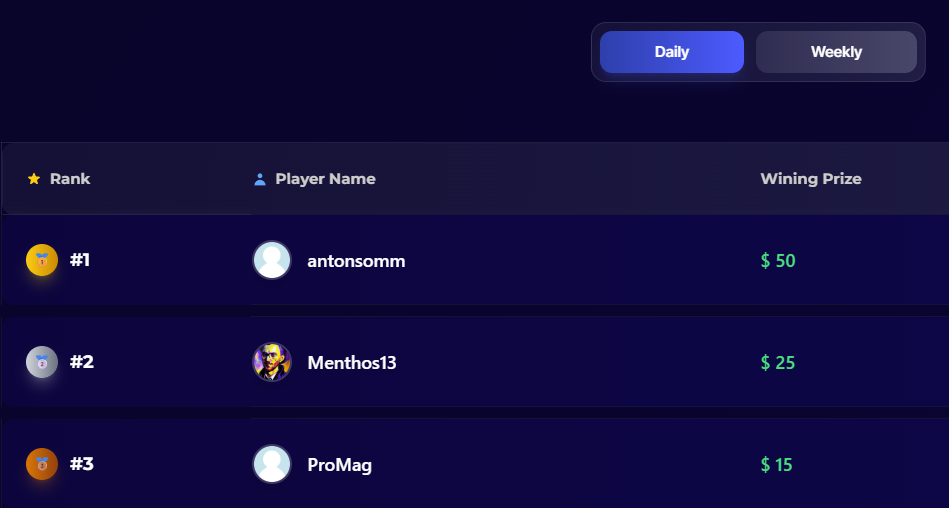 Daily competitions where the top 10 players win cash prizes EVERY day. Then your scores get tallied up for even BIGGER weekly prizes.