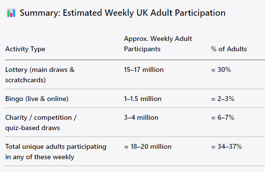 As you can see, the potential market overall in the UK alone for a business targeting people who want to quiz and win money for doing it is pretty damn HUGE.