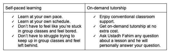“Thank you teacher for making me learn Quranic Arabic. It’s my first time joining an online class and I love the way you are teaching, Jazakallah.” (Mohamed)