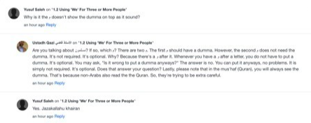 “Thank you teacher for making me learn Quranic Arabic. It’s my first time joining an online class and I love the way you are teaching, Jazakallah.” (Mohamed)